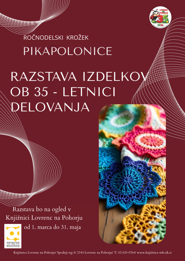 Vabimo vas, da si ogledate razstavo izdelkov od 2. marca do 30. maja, v času odprtosti Knjižnice Lovrenc na Pohorju: