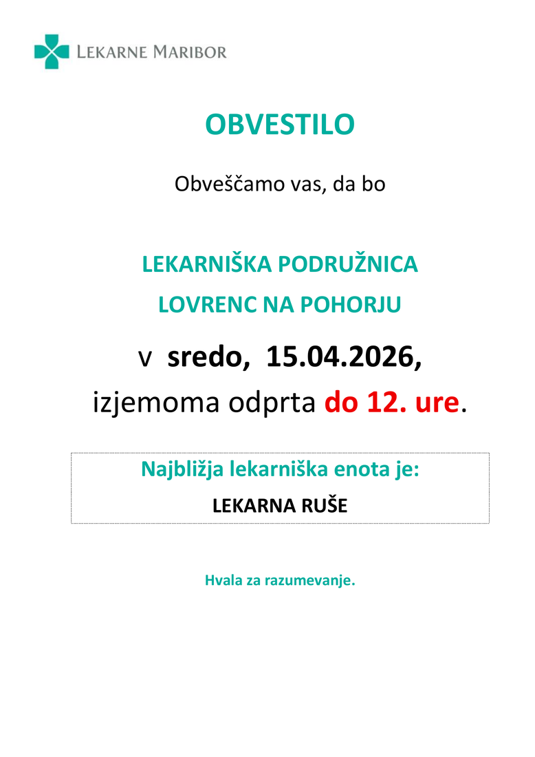 OBVESTILO - LEKARNA LOVRENC