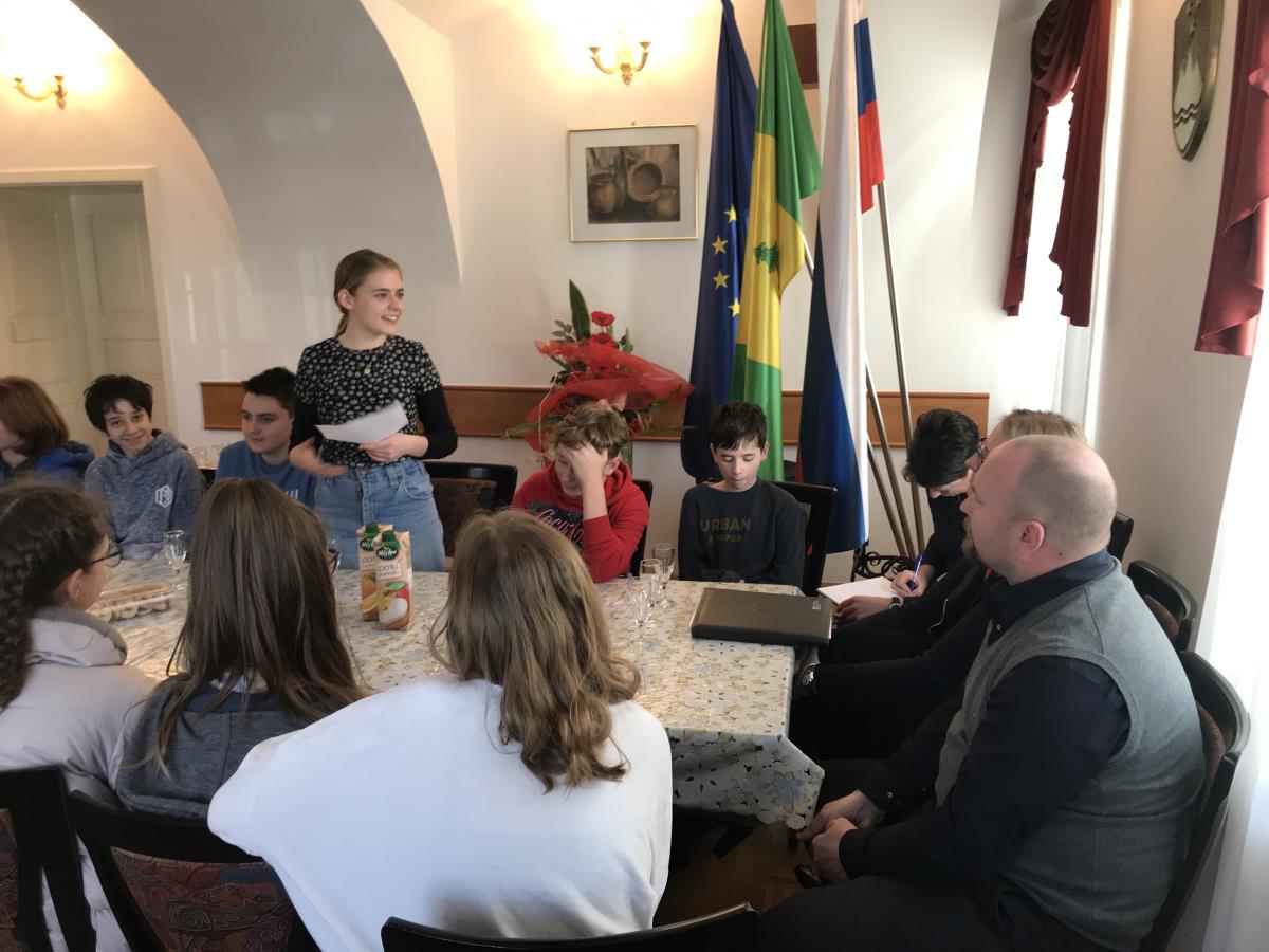Danes, 11. 3. 2020, so nas na pobudo razredničarke, gospe Darje Miglič obiskali učenci 8. razreda Osnovne šole Lovrenc na Pohorju. Po sprejemu, ko sta zbrane nagovorila župan, Marko Rakovnik in direktorica občinske uprave, Simona Grobelnik so pričeli s sejo, na kateri so učenci predstavili svoje ideje, kako Lovrenc na Pohorju izboljšati in ga narediti še bolj prijaznega. Dotaknili so se najrazličnejših problematik, s katerimi se vsakodnevno soočajo. Med drugim so predlagali, da bi se več finančnih sredstev namenilo zdravstvu, ranljivim skupinam, invalidom, ljudem z nizkimi prihodki in beguncem, za spodbujanje kulturnih in športnih dejavnosti in skrbi za živali. Želijo si tudi več športnih objektov in površin, ki bi bile namenjene aktivnemu preživljanju prostega časa za vse generacije, boljšo turistično ponudbo, predvsem pa večjo povezanost in dobre medsebojne odnose. Po predstavitvi pobud je sledila pogostitev, na kateri se je razvila živahna debata, postavljenih pa je bilo tudi nekaj zanimivih vprašanj. S svojimi idejami in kritičnim, a konstruktivnim razmišljanjem so nas prijetno presenetili in razšli smo se z obojestransko obljubo, da bomo sodelovali tudi v prihodnje.