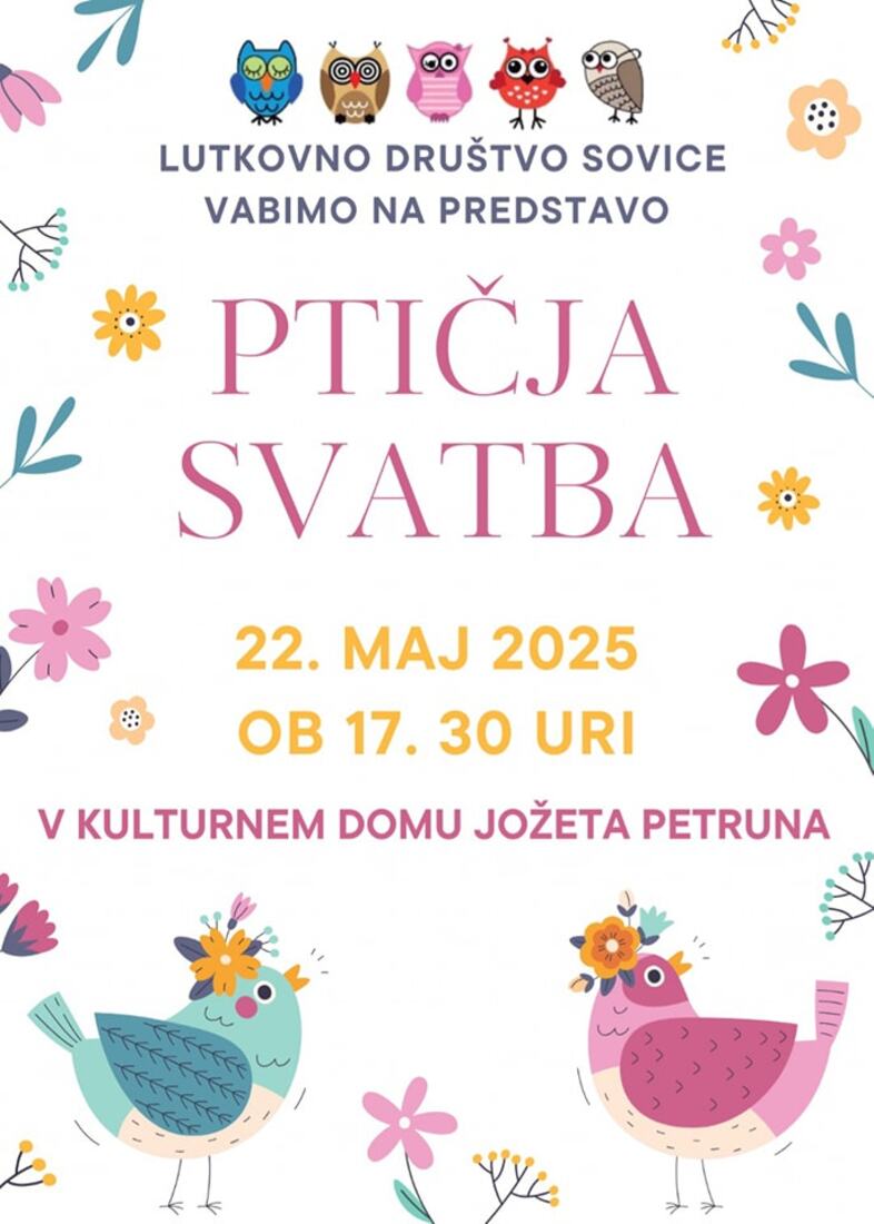 Vabljeni na predstavo PTIČJA SVADBA, V organizaciji Lutkovnega društva SOVICE.
