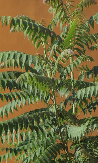 Octovec je manjše drevo, ki izvira iz Severne Amerike. Zanj je značilna široka dežnikasta krošnja. Za razliko od listov velikega pajesena imajo listi octovca grobo nazobčan rob. Konec poletja se na ženskih rastlinah razvijejo koničasti rdeči plodovi.