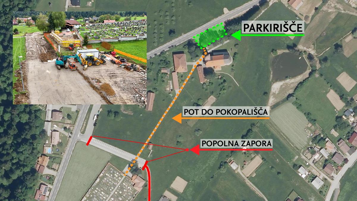 Obveščamo vas, da je zaradi izvajanja gradbenih del na območju pokopališča začasno spremenjen prometni režim in dostop. Do pokopališča je trenutno omogočen dostop po Benediktinski poti, mimo cerkve sv. Lovrenca in Pajštve.