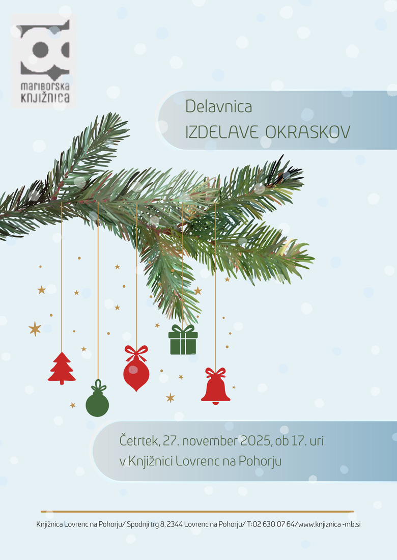 Mariborska knjižnica vabi na ustvarjalno delavnico izdelave prazničnih okraskov, ki bo