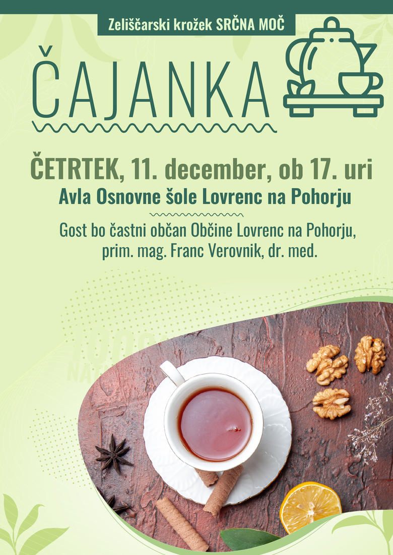 Vabimo vas na prijetno druženje ob čaju, ki ga pripravlja Zeliščarski krožek SRČNA MOČ.