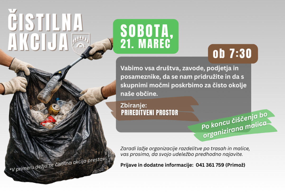 Vabimo vas, da se nam pridružite na čistilni akciji in s skupnimi močmi poskrbimo za čisto okolje naše občine.
