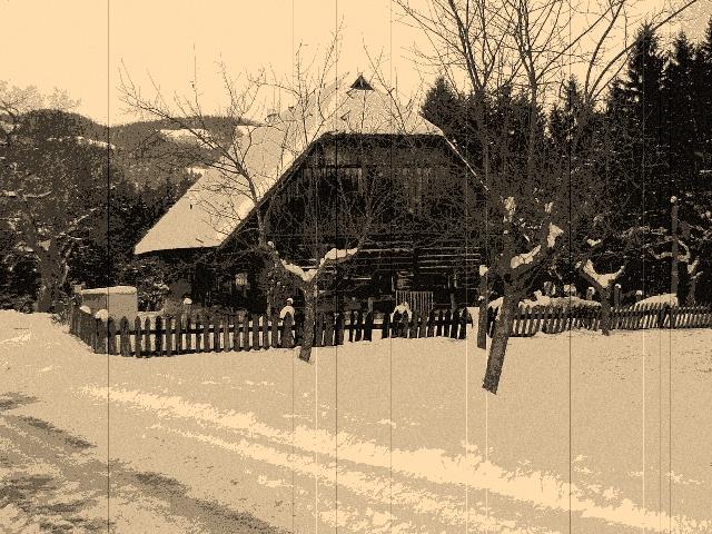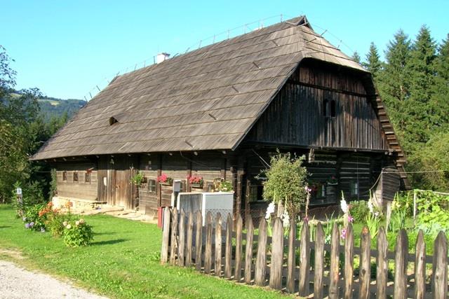 Ta pristna kmečka hiša iz 15. stoletja je v celoti lesena, grajena iz brun, okna so kvadratna, zaščitena z baročnimi kovanimi mrežami. Hišo pokriva mogočna strma čopasta "šintlasta" streha. Dimnica je bila ohranjena do prve svetovne vojne, nato pa so stene pobelili z apnom. Tla so še vedno lesena.
