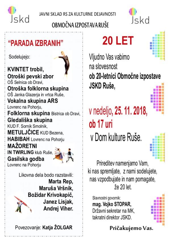 V nedeljo, 25.11.2018 bo ob 17 uri, v Domu kulture Ruše slovesnost ob 20-letnici Območne izpostave JSKD Ruše,