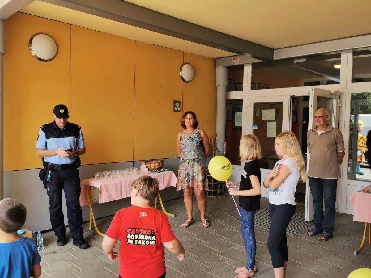 Zjutraj sta nas pred osnovno šolo pozdravila ravnateljica Marija Osvald-Novak in Goran Poglajen, učitelj predmetnega pouka in član SPV-ja. Zaželela sta nam uspešno in varno šolsko leto ter nas povabila na poučen sprehod po kraju.