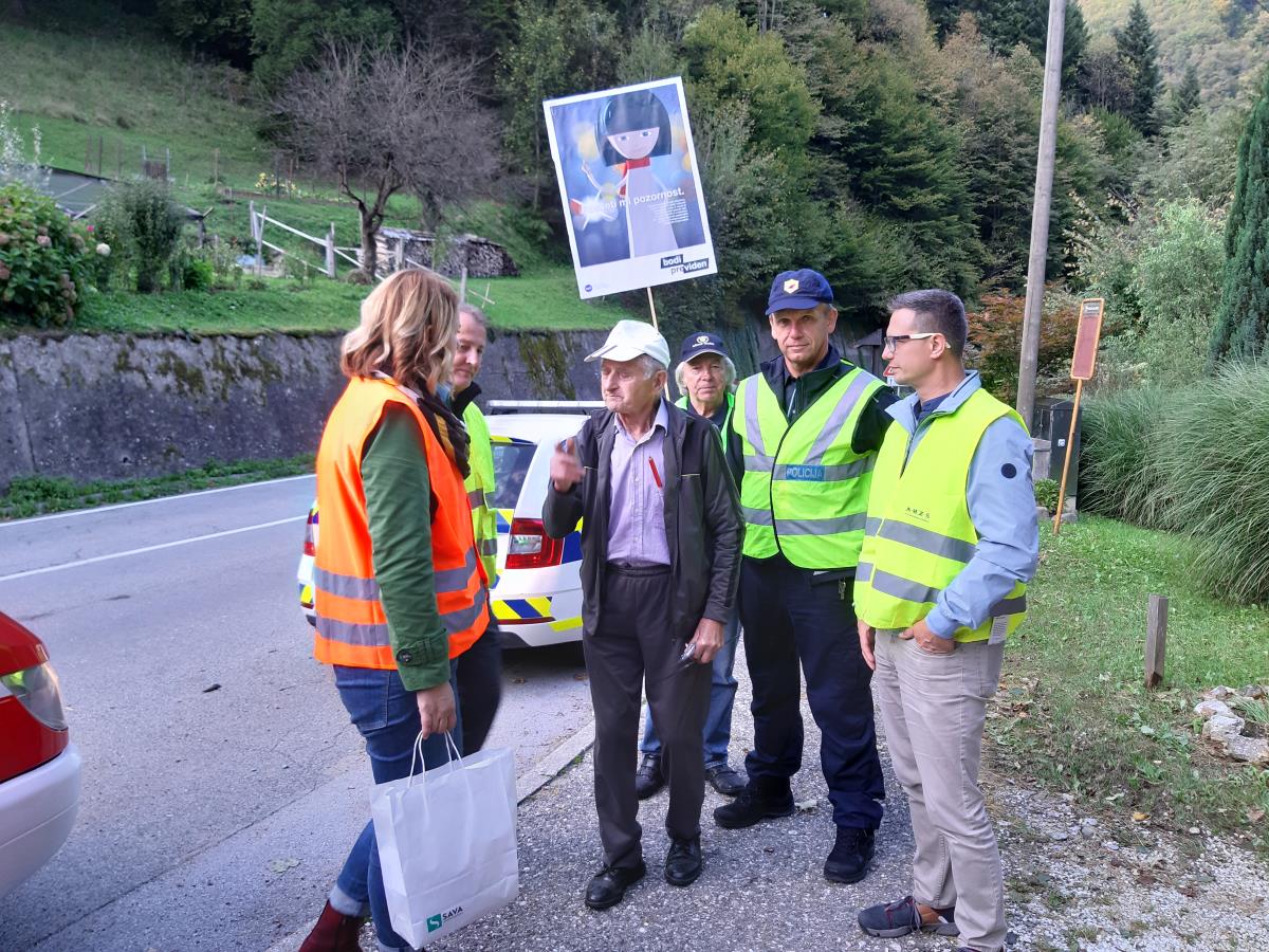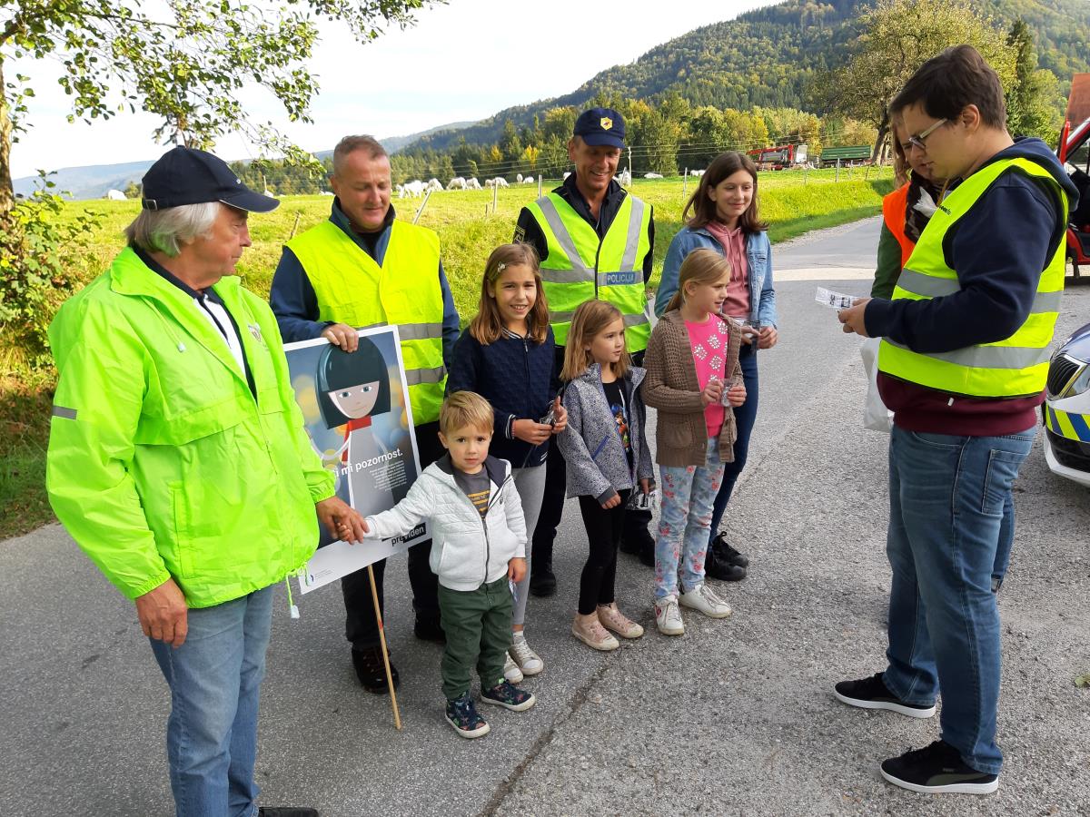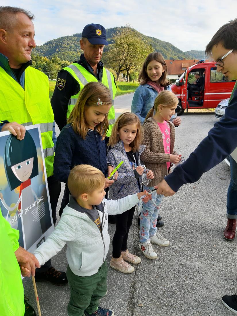 Včeraj se je naš kraj pridružil 50 občinam po vsej Sloveniji v koordinirani preventivni akciji razdeljevanja odsevnih teles. V sodelovanju z osnovno šolo, društvi in Policijsko postajo Ruše je Svet za preventivo in vzgojo v cestnem prometu organiziral preventivne dogodke v našem kraju. Cilj preventivne akcije je poskrbeti za večjo varnost pešcev. Posveti mi pozornostV dopoldanskem času so učenci četrtih razredov osnovne šole pisali tradicionalna pisma starim staršem in sorodnikom, kasneje pa so se predstavniki razrednih skupnosti z mentorjem, g. Goranom Poglajnom odpravili v Prireditveni center, kjer so pozdravili starostnike, jim razdelili odsevne trakove in jih skupaj z zaposlenimi Drušva Zavetje spomnili, kako se obnašati v vlogi pešca, da bomo vidni in varni na svoji poti. Učenci so po poti krajanom delili odsevne trakove, kresničke in zloženke, ki jih je pripravila Agencija za varnost prometa. Nosili so odsevne jopiče in rumene balone, da so jih vozniki že od daleč opazili.