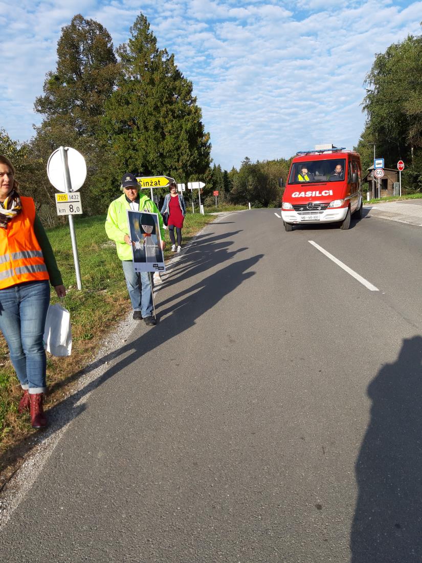 V popoldanskih in večernih urah so se člani SPV-ja, policist Policijske postaje Ruše ter član Združenja šoferjev in avtomehanikov Ruše, z gasilskim avtomobilom odpeljali na Činžat, Loge, Puščavo in Ruto, kjer so naključnim mimoidočim delili odsevne trakove in s transparentom voznike opozarjali na previdno vožnjo. Zaključek preventivne akcije v LovrencuPreventivne aktivnosti so se zaključile s sprehodom vseh sodelujočih ob glavni cesti skozi kraj. Mimoidoče so opozarjali, da prihajajo dnevi slabše vidljivosti, zato je naloga voznikov, da vozijo še posebej previdno, upoštevajo pešce in jim dosledno odstopajo prednost pred prehodi za pešce. Pešci sami pa poskrbijo za svojo vidnost. V ta namen so dobili odsevne trakove in kresničke. Vsem, ki ste aktivno sodelovali pri izvedbi nacionalne akcije “Pešec”, se iskreno zahvaljujemo! Ne pozabimo, na cesti nismo sami, bodimo vidni in preVidni!
