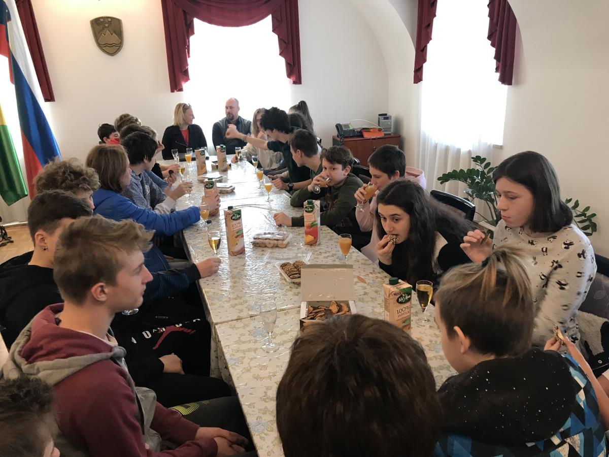 Danes, 11. 3. 2020, so nas na pobudo razredničarke, gospe Darje Miglič obiskali učenci 8. razreda Osnovne šole Lovrenc na Pohorju. Po sprejemu, ko sta zbrane nagovorila župan, Marko Rakovnik in direktorica občinske uprave, Simona Grobelnik so pričeli s sejo, na kateri so učenci predstavili svoje ideje, kako Lovrenc na Pohorju izboljšati in ga narediti še bolj prijaznega. Dotaknili so se najrazličnejših problematik, s katerimi se vsakodnevno soočajo. Med drugim so predlagali, da bi se več finančnih sredstev namenilo zdravstvu, ranljivim skupinam, invalidom, ljudem z nizkimi prihodki in beguncem, za spodbujanje kulturnih in športnih dejavnosti in skrbi za živali. Želijo si tudi več športnih objektov in površin, ki bi bile namenjene aktivnemu preživljanju prostega časa za vse generacije, boljšo turistično ponudbo, predvsem pa večjo povezanost in dobre medsebojne odnose. Po predstavitvi pobud je sledila pogostitev, na kateri se je razvila živahna debata, postavljenih pa je bilo tudi nekaj zanimivih vprašanj. S svojimi idejami in kritičnim, a konstruktivnim razmišljanjem so nas prijetno presenetili in razšli smo se z obojestransko obljubo, da bomo sodelovali tudi v prihodnje.