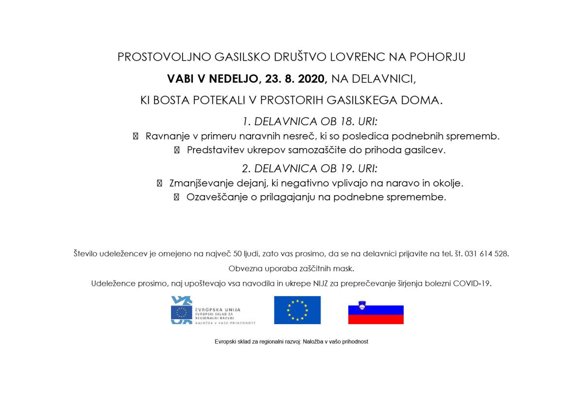 vabi v NEDELJO, 23. 8. 2020 in TOREK, 25. 8. 2020 na delavnice,