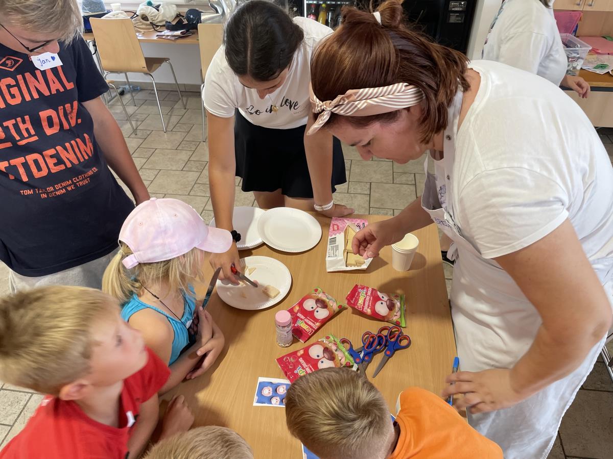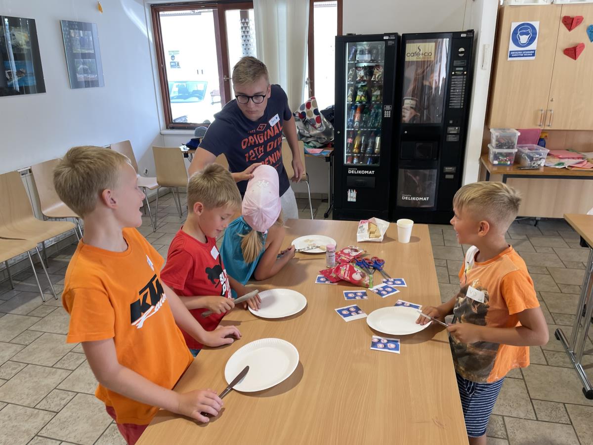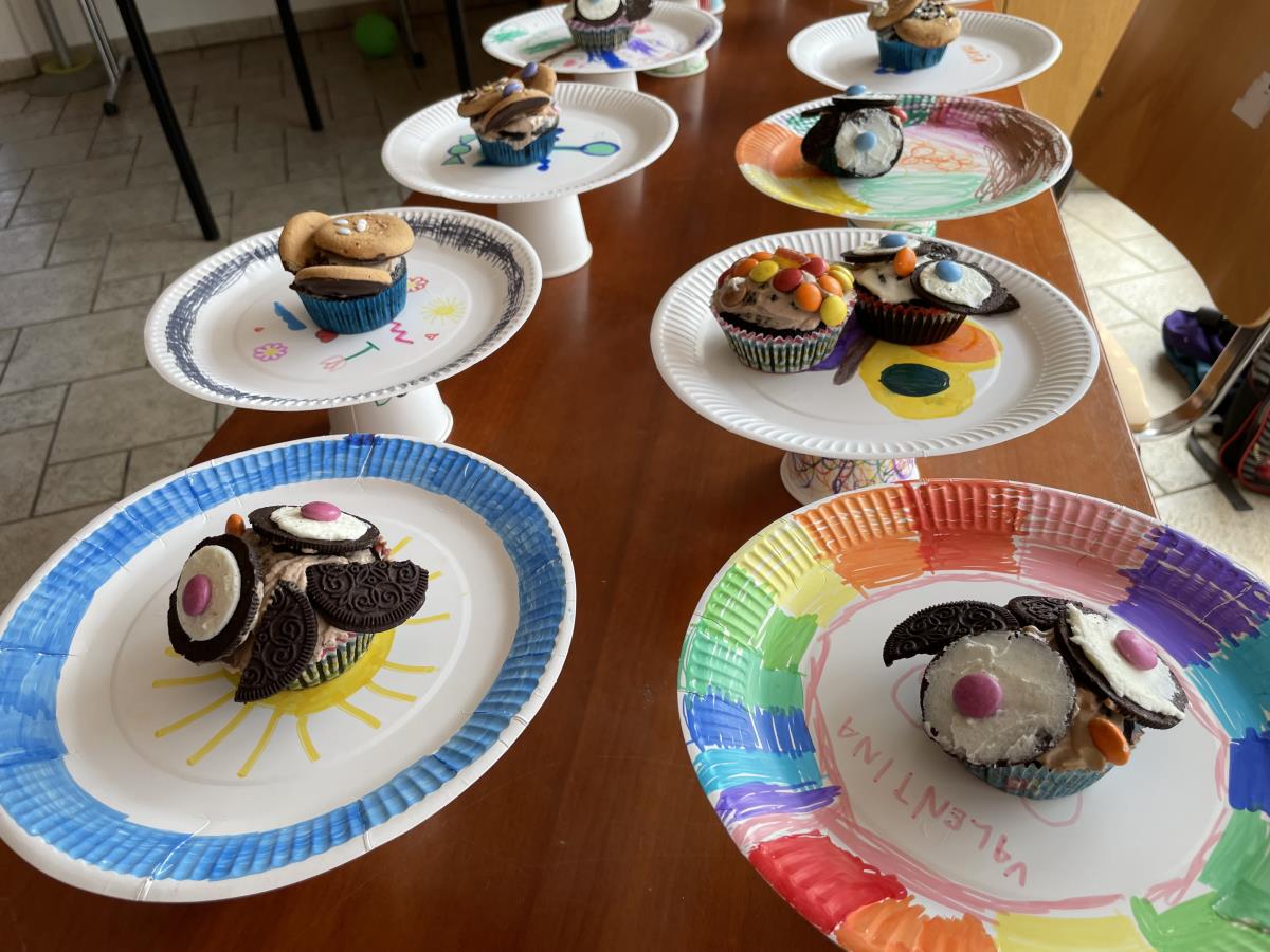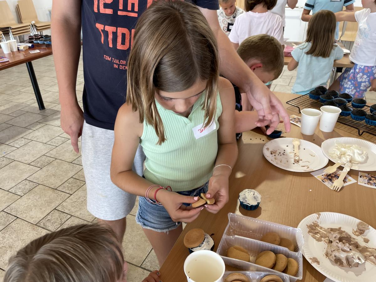 Nov teden, nov dan za aktivne počitnice...Začeli smo jih z igro in dobrim zajtrkom in jih nadaljevali z delavnico "Naša mala slaščičarna 2.0". Z nami je bila ponovno Špela Španbauer iz pekarne Saint Lorenz, ki je za nas pripravila slastne mafine. Otroci so si izdelali podstavke s svojim imenom in iz mafinov izdelali različne motive. Od pujska, sovice, ribice in niti navihana opica ni manjkala. Nekaj izdelkov smo pojedli, nekaj smo jih hranili v hladilnik za domov. Po delavnici smo odšli na kosilo in se po kosilu na igrišču igrali igro "Kdo se boji črnega moža?".