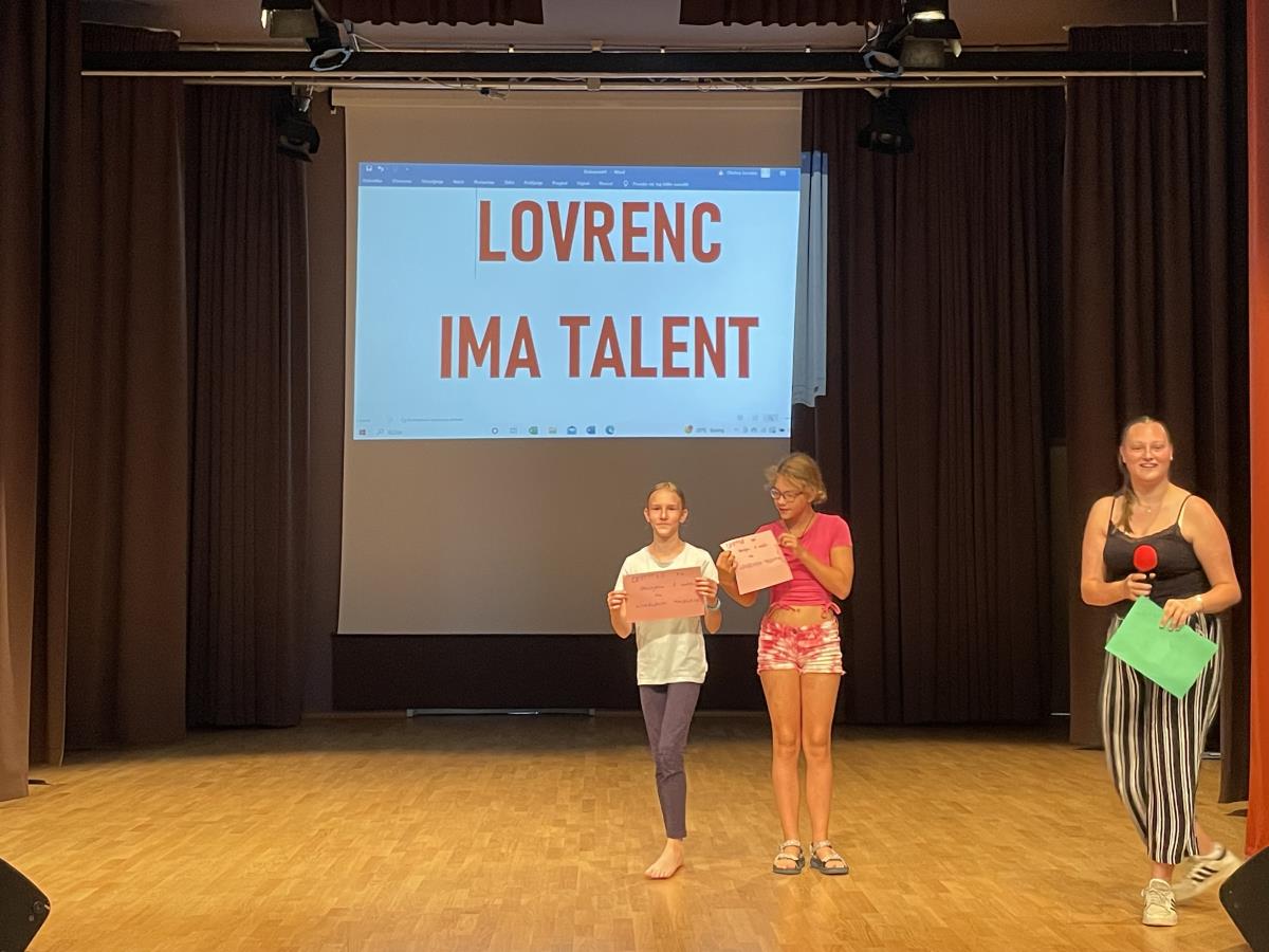 V četrtek, 27. 7. 2023 smo na željo otrok ponovili delavnico karaok. Tokrat smo izvedli prireditev "Lovrenc ima talent". Naši animatorji so se preobrazili v žirante, ki so jih naši otroci s svojimi nastopi popolnoma očarali. Videli smo pevce, plesne skupine, karateistki in tudi dve čarodejki.