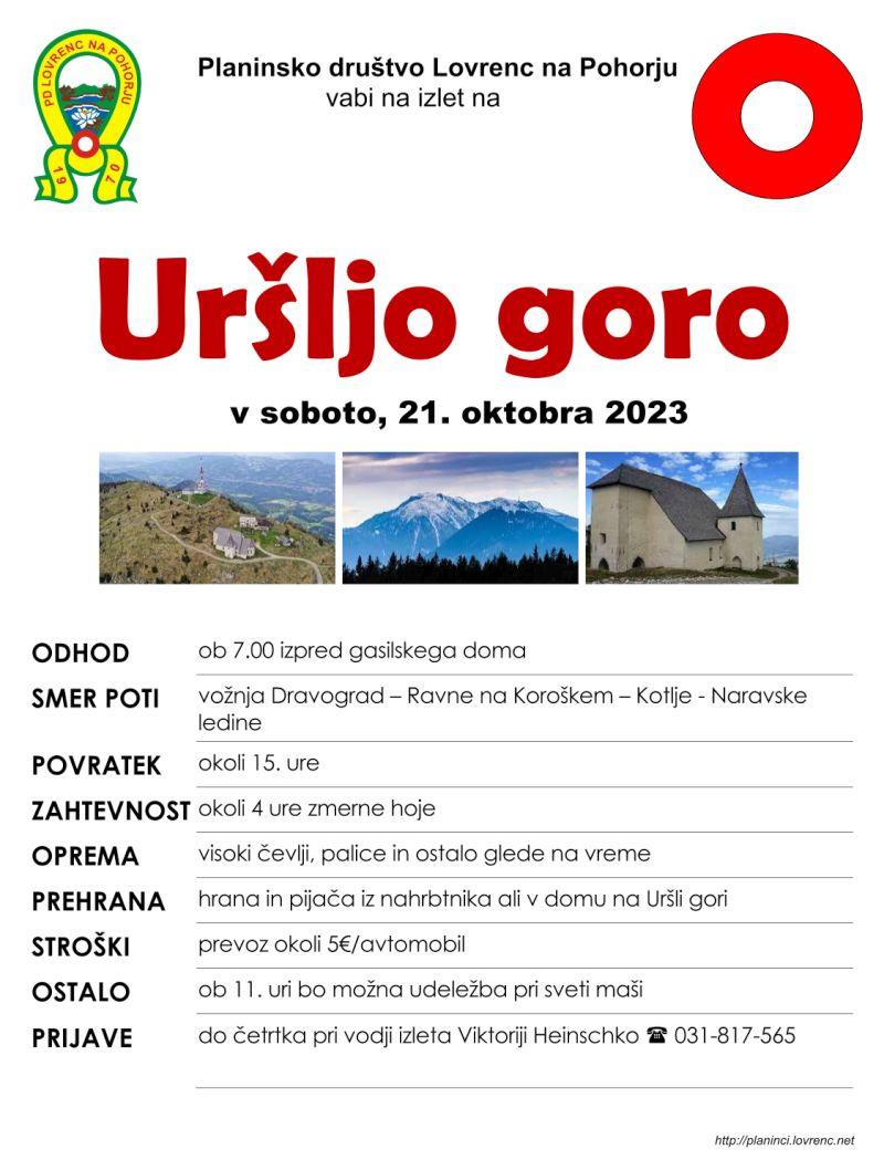 Tudi lovrenški planinci imamo nekaj Uršk zato se bomo pridružili dogodku. Odhod ob 7. uri z osebnimi avtomobili izpred gasilskega doma.