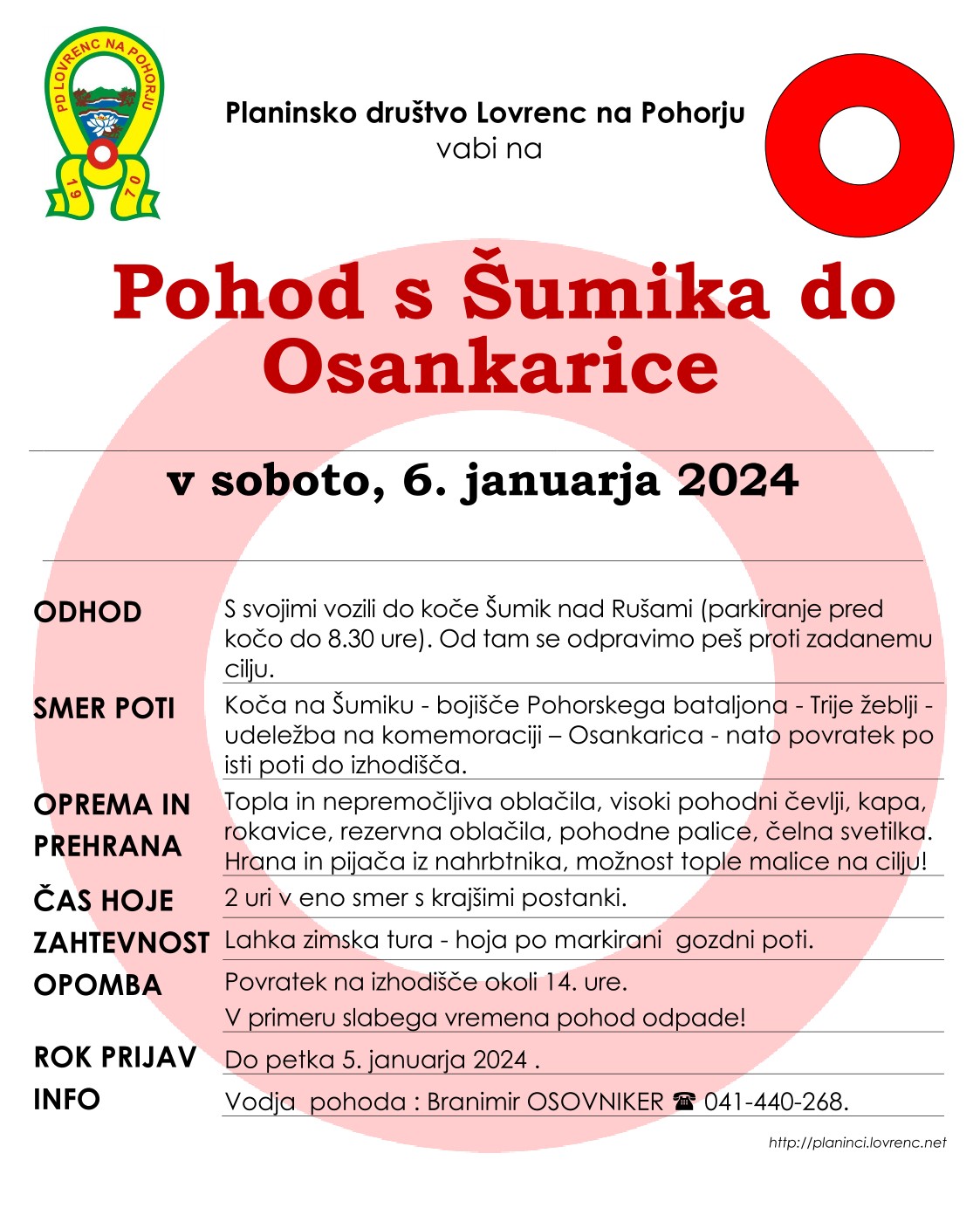 Prijave pri vodniku Branimirju Osovnikerju do 5. 1.