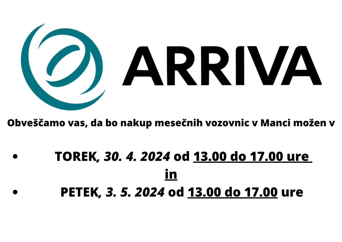 ARRIVA - PRODAJA MESEČNIH VOZOVNIC ZA MESEC MAJ 2024