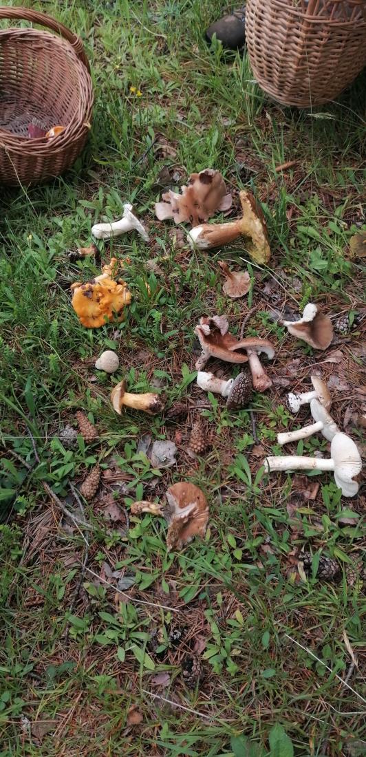 borovem storžu, ki je bil zakopan vsaj deset centimetrov globoko. Kar smo videli je bilo nenavadno in zelo poučno. Na jasi smo se ustavili in vse nabrano ponovno pregledali in ponovili značilnosti in posebnosti. Mnoge gobe smo tudi okušali in bila sem presenečena nad pestrostjo okusov svežih gob.