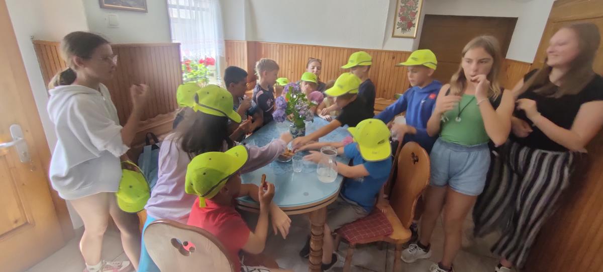 Dopoldan smo tako preživeli v lepem ambientu Čebelarskega doma, od katerega smo se odpravili na kosilo in nato v svet igre in likovnega ustvarjanja.