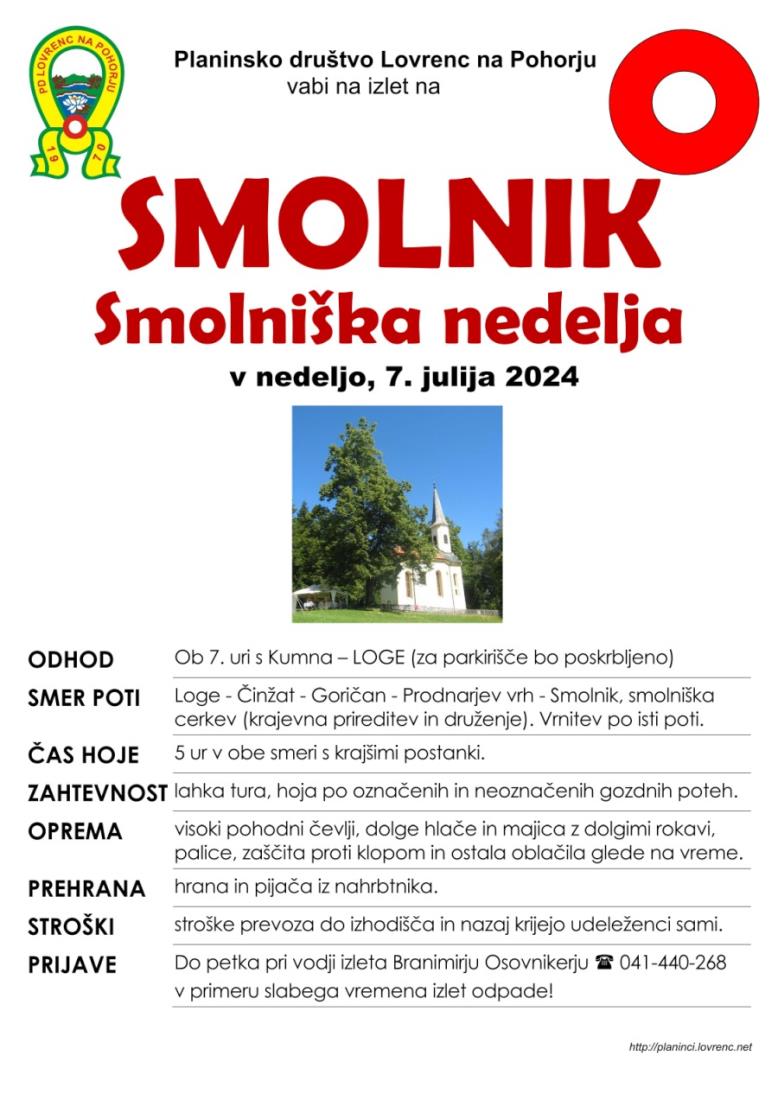 Ob prazniku Smolniške nedelje vabljeni na planinski izlet s Činžata na Smolnik in nazaj.