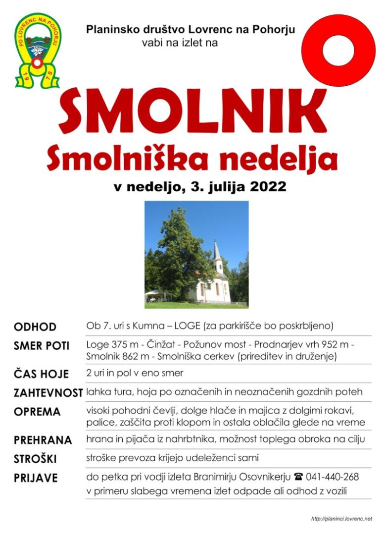 Ob prazniku Smolniške nedelje vabljeni na pohod z Logov na Smolnik in nazaj.