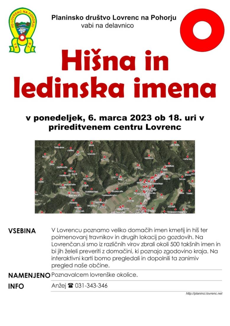 V Lovrencu poznamo veliko domačih imen kmetij in hiš ter poimenovanj travnikov in drugih lokacij po gozdovih. Na Lovrenčan.si smo iz različnih virov zbrali okoli 500 takšnih imen in bi jih želeli preveriti z domačini, ki poznajo zgodovino kraja. Zato vas vabimo v ponedeljek, 6. 3. ob 18. uri v prireditveni center, kjer bomo skupaj na interaktivni karti pregledali in dopolnili ta zanimiv pregled naše občine.
