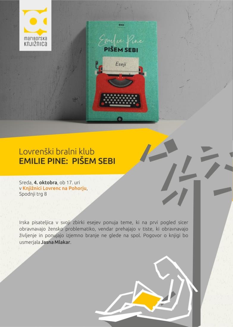 Okrobrsko srečanje bralnega kluba bo posvečeno Irski pisateljici Emilie Pine in njeni zbirki esejev "Pišem sebi".